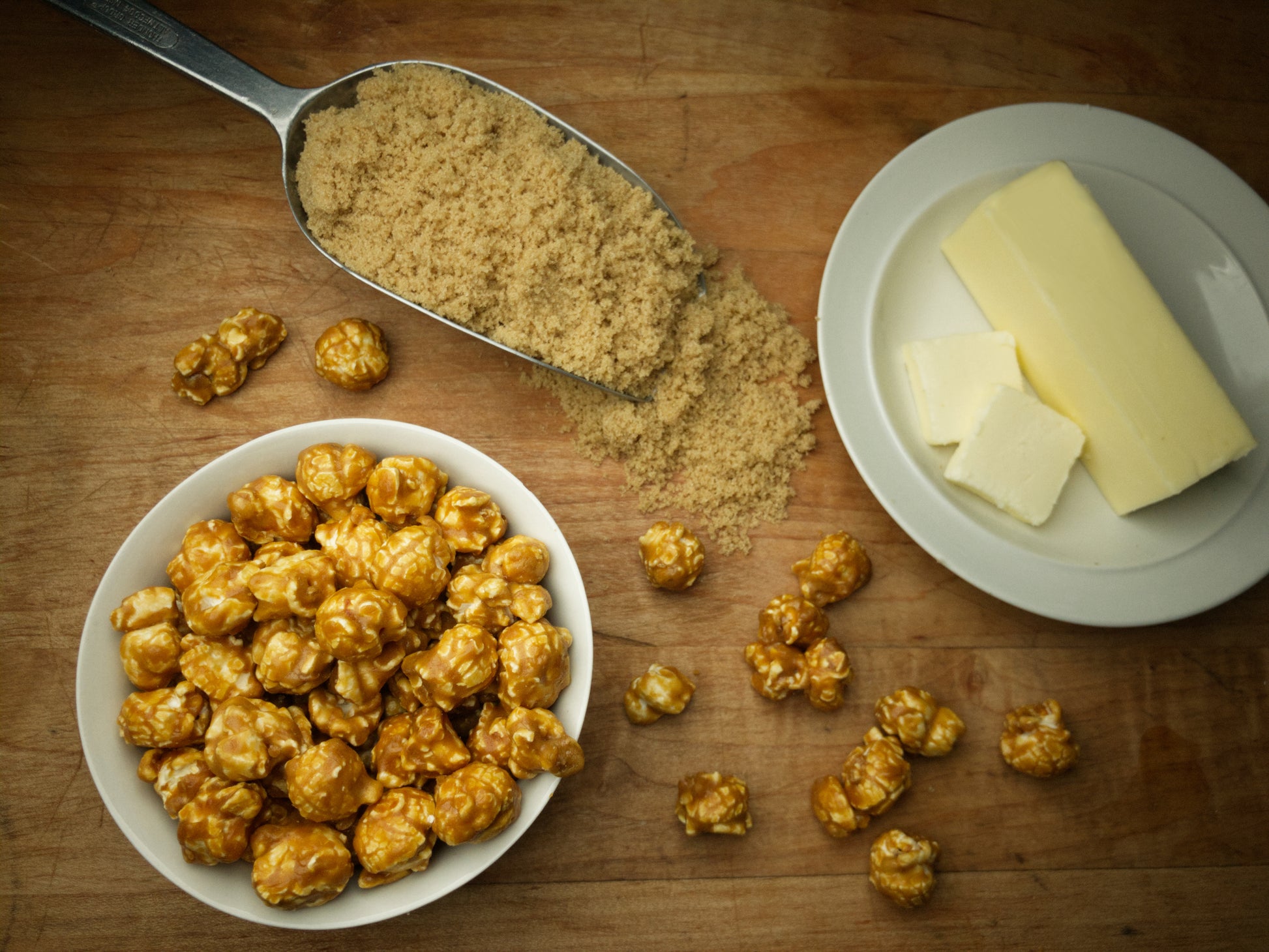 Carefully Crafted With: Brown Sugar (Sugar, Molasses), Butter, Ohio Grown Popcorn, Light Corn Syrup, Canola Oil, Salt, Baking Soda, Real Vanilla Extract, Soy Lecithin